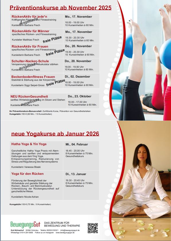 Freie Plätze in den Präventions- und Gesundheitskurse (bitte hier klicken)